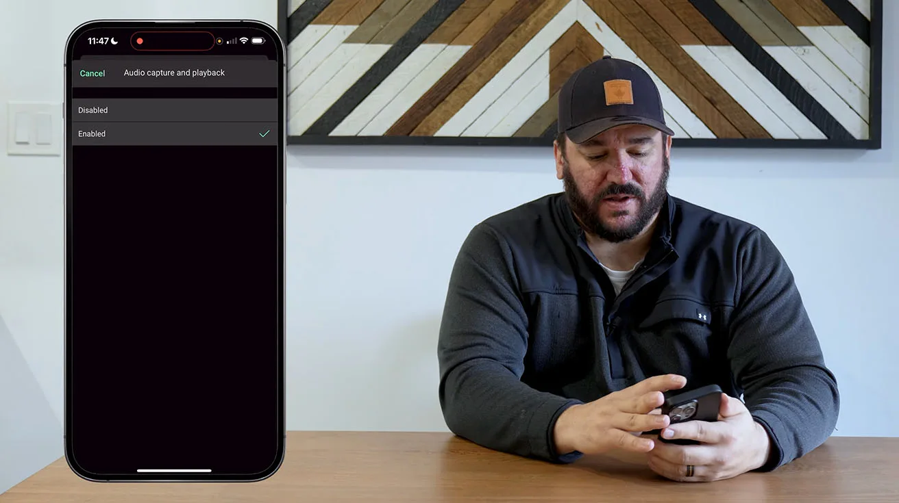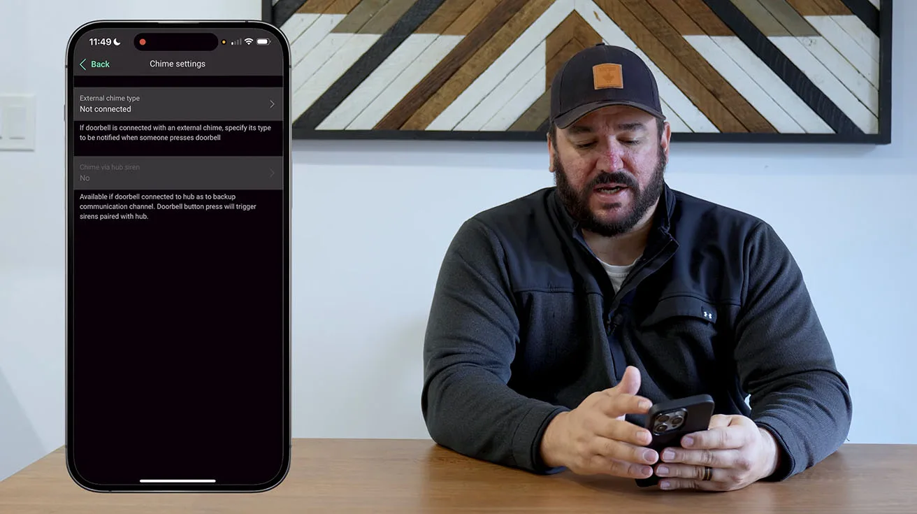 The app also ran a quick connectivity test to confirm the DoorBell had a strong connection to the Hub. Signal strength is critical for video doorbells, since they transmit relatively large amounts of data compared to standard sensors. In this installation, the Hub was located centrally in the home, about 30 feet from the front door, and we had excellent signal – full bars, no issues.