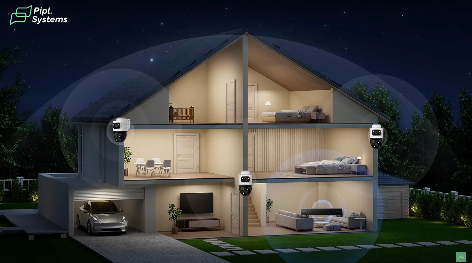 The cameras are equipped with dual-mode night vision. In standard low-light, the eufy system S4 Max uses AI-enhanced ISP (Image Signal Processing) to preserve full-color detail. When light levels drop further, infrared LEDs activate, providing clean black-and-white footage with strong contrast.
