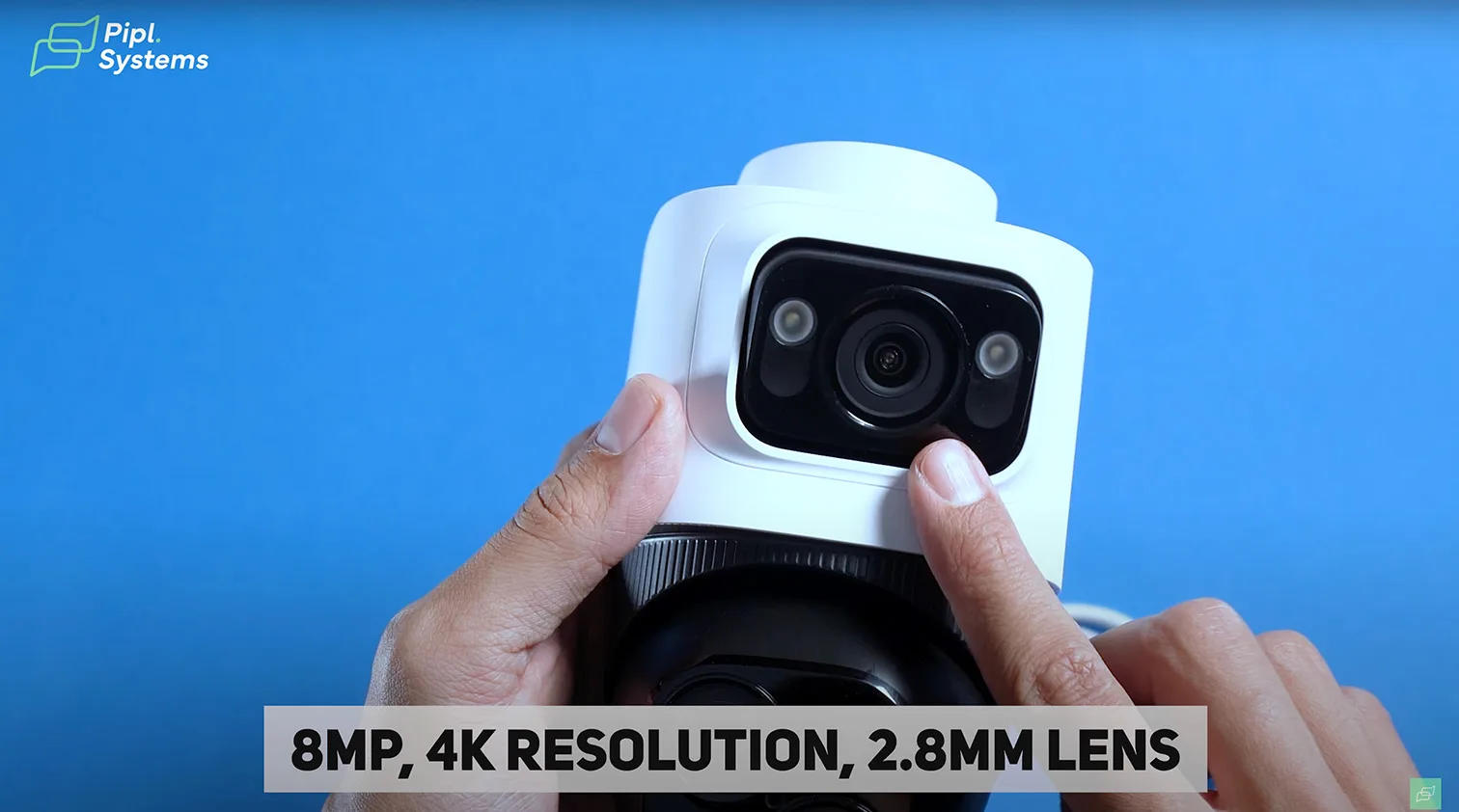 The top bullet camera uses an 8MP sensor with a 2.8 mm lens, delivering true 4K resolution and a 122° field of view. The PTZ module integrates two lenses: one wide-angle (117° FOV) and one telephoto (44° FOV), offering both situational awareness and object-level focus.