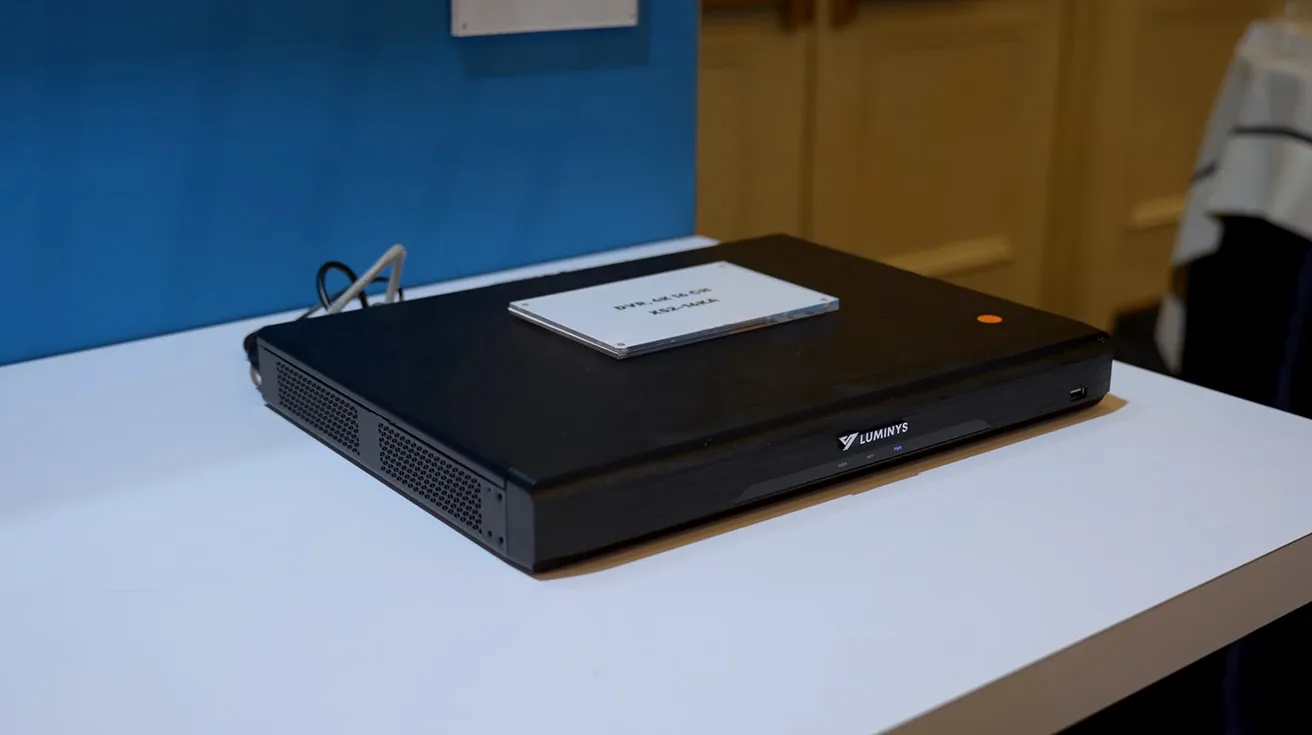 To anchor those cameras, we show a 16‑channel penta‑hybrid DVR that supports the four leading analog video standards and allows you to mix and match third‑party cameras with Luminys units on the same box. This is aimed squarely at projects where you need a bridge between legacy analog CCTV and newer NDAA‑compliant hardware, letting you introduce Luminys systems without forcing a full rip‑and‑replace on day one.