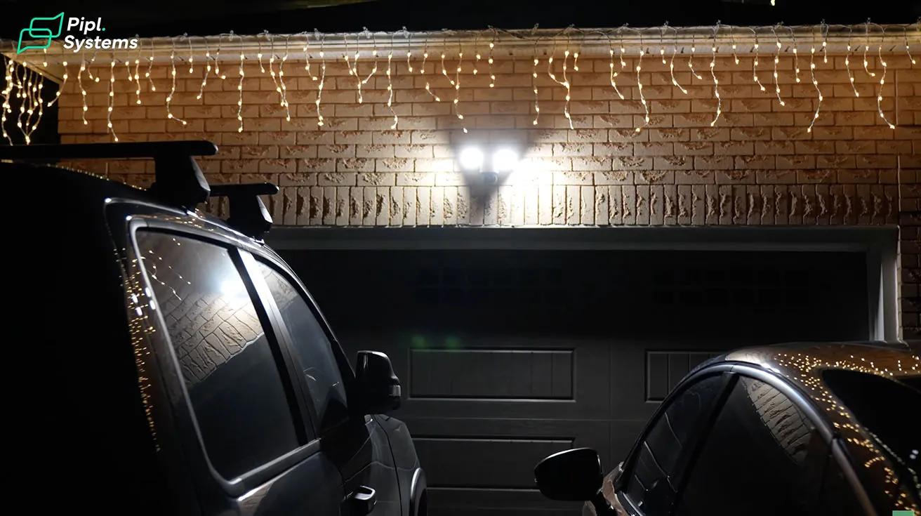 After the installation, I spent some time testing the camera outside. I positioned it to monitor the driveway and the front area of my garage. The main goal here is to keep an eye on vehicles and activity near the house. The camera records in 4K resolution, and the image looks very clear during the day. At night, the 3000-lumen floodlights kick in when motion is detected, lighting up the entire driveway. Full-color night monitoring is a real upgrade compared to the grainy black-and-white footage I got from my old cameras. Three passive infrared sensors provide 270-degree out-of-view detection at distances up to 10 meters, catching motion even when it starts outside the visible frame. This means the camera can detect someone approaching from the side and automatically pan to track them.