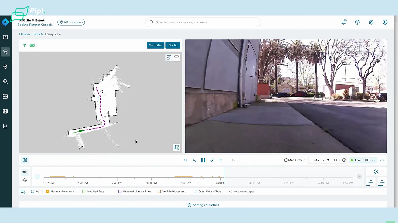 When the robot completes a route, it pulls all that gathered data directly into the Rhombus system. You get a full, permanent record of the event. If an incident occurs in a far parking lot, you do not have to spend time and energy walking out there. The robot gathers the information for you. Later, you can go back in time within the dashboard. You can review the exact route, watch the past footage, and track everywhere Rhombus Recon has been.
