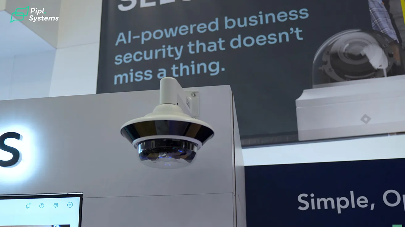 While Recon is our newest platform, we continue to expand our core hardware. Our current lineup covers every variation of camera that makes sense for enterprise deployments. This includes dome, fisheye, bullet, and multisensor models. Right here at the booth, we are displaying the R600. It is a four-lens camera designed for situations where you need multiple views of a wide area. We are also actively developing a new PTZ camera to give operators even more active, targeted control.