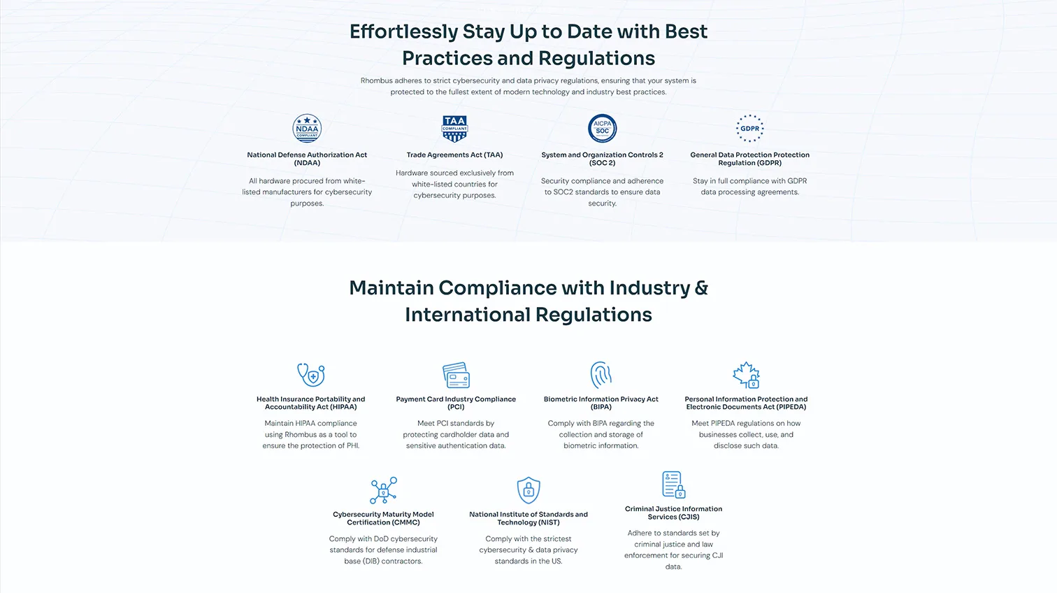 Yes, the N100 and Rhombus cloud architecture are fully NDAA-compliant, making them suitable for regulated environments including U.S. government and critical infrastructure projects.