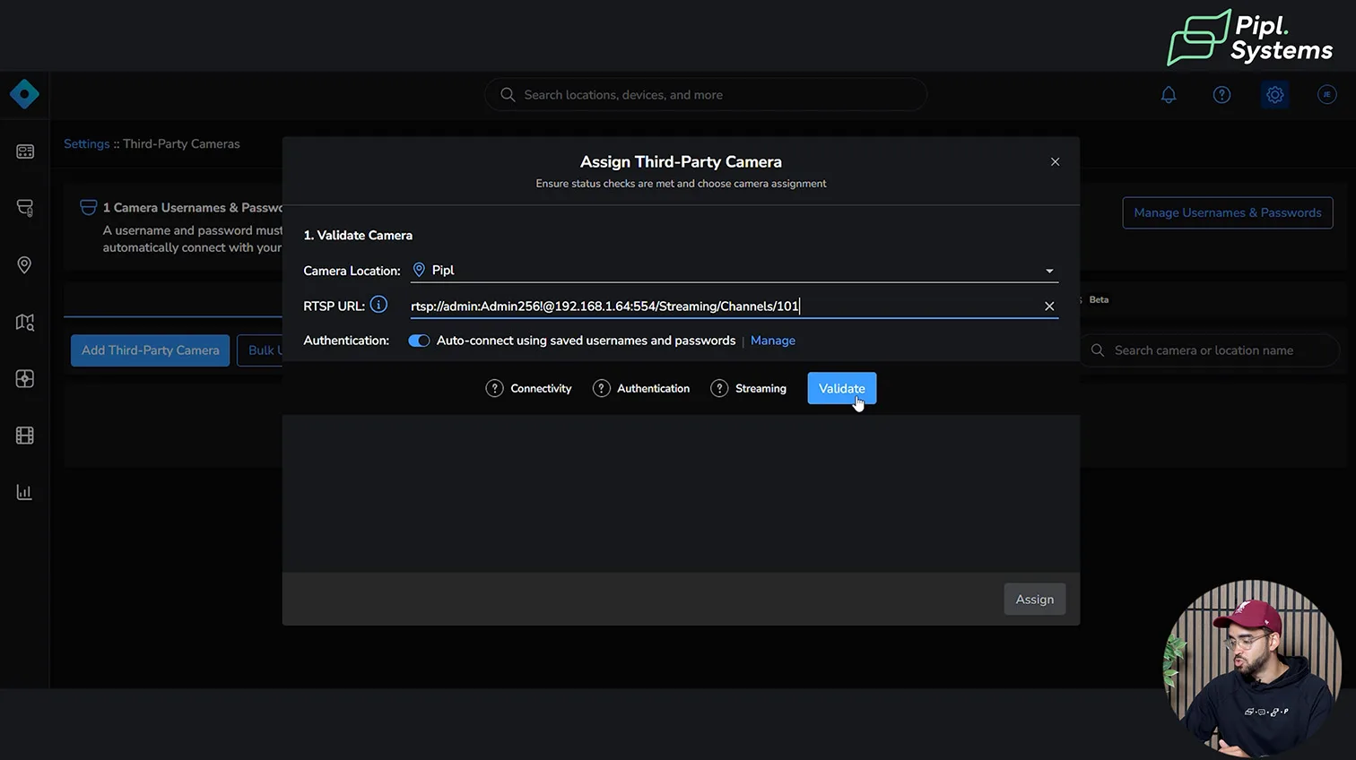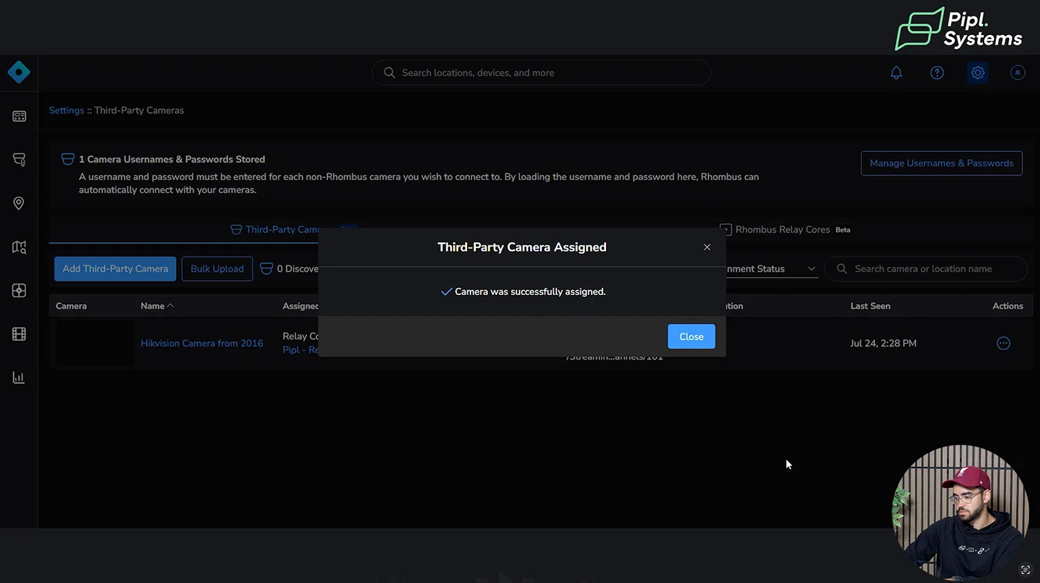 - Assign the camera to the correct Relay Core (e.g., “Pipl – Relay Core 1”),