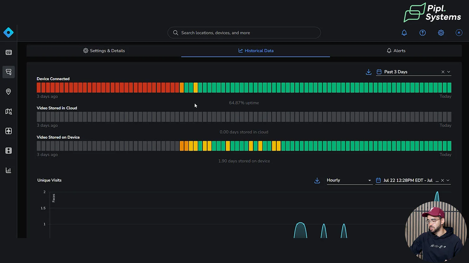 Through the “Historical Data” section, Rhombus reveals a log of system-level metadata: