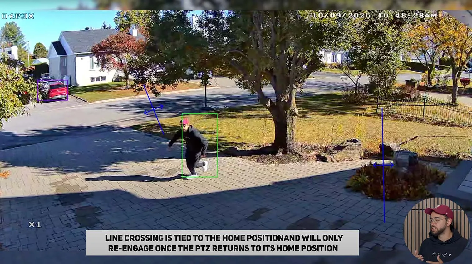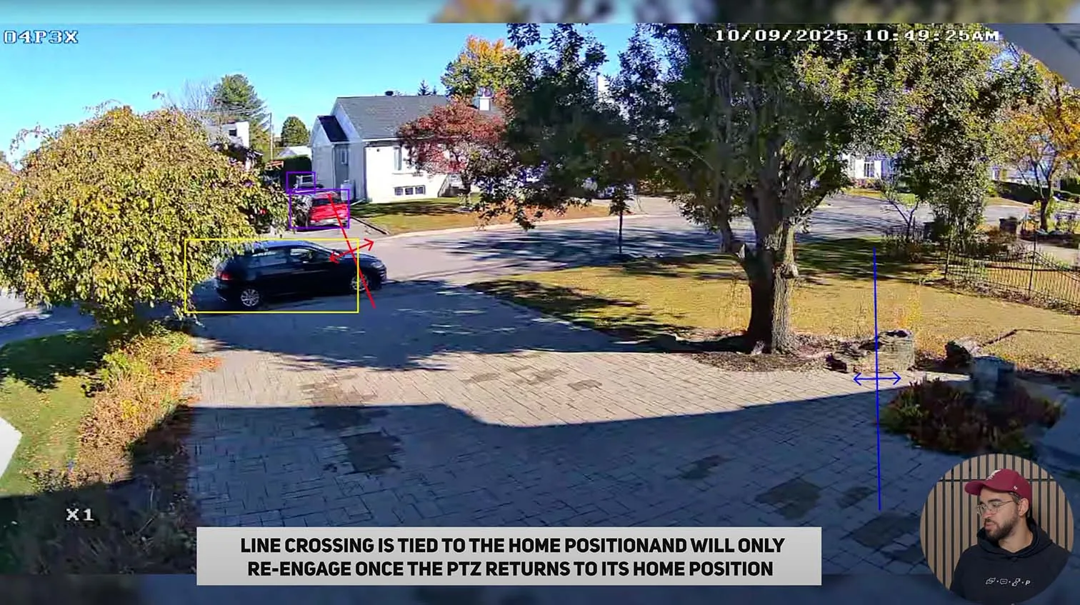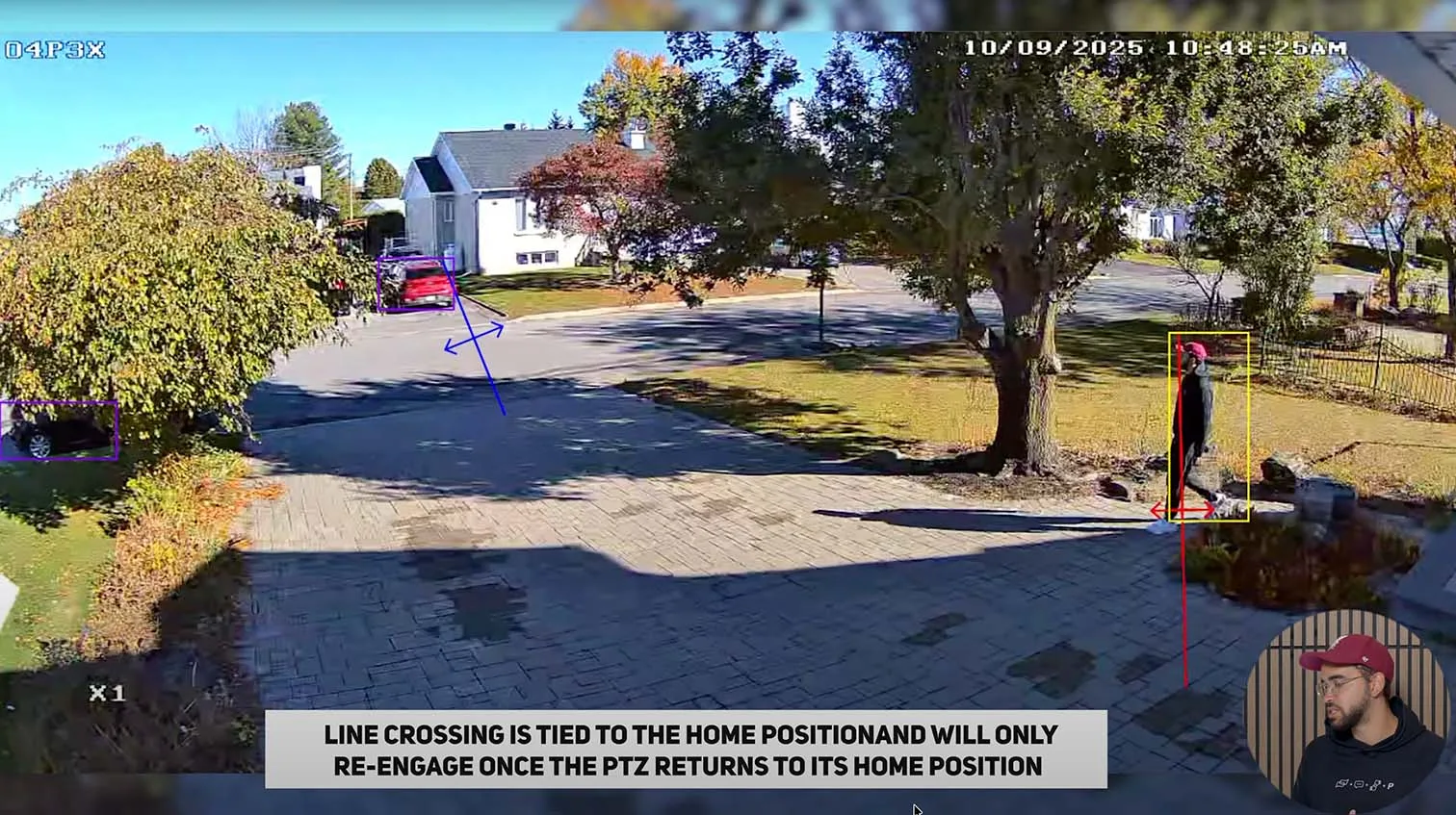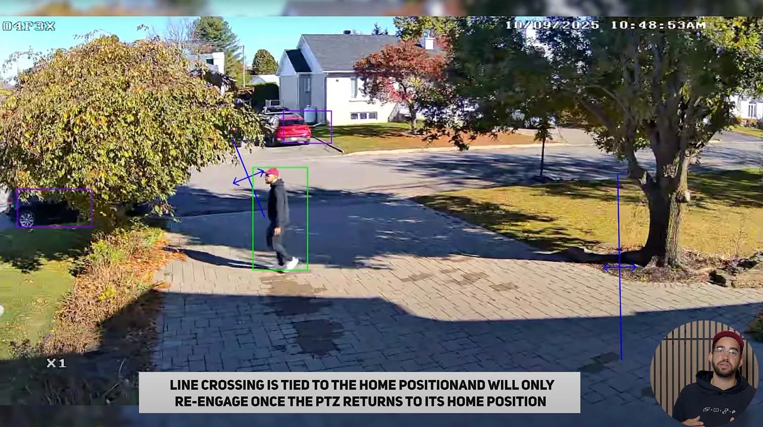 The O4P3X leverages advanced analytics to actively follow both people and vehicles within its field of view. As soon as a subject enters a monitored area, such as approaching a building entrance or moving through a parking lot, the camera automatically identifies and locks onto the subject. We configured multiple virtual line crossing zones in our studio: every time a person crossed into a secure area or a vehicle entered the driveway zone, the tracking was triggered. The camera panned and zoomed smoothly, keeping the moving subject in frame with minimal delay or jitter.