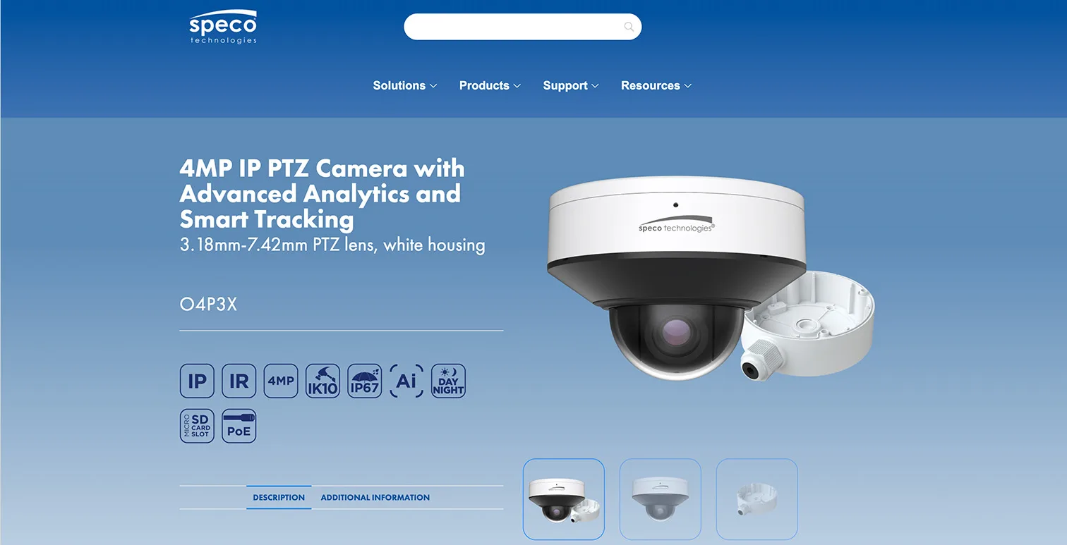 Across North America, the surveillance market is shifting toward higher-resolution and intelligent analytics adoption. Market analysis shows that over 70% of new professional-grade PTZ installations in 2025 feature built-in AI for real-time behavioral recognition and adaptive tracking. The Speco O4P3X mini PTZ aligns with this direction – offering locally processed analytics without requiring external servers, which reduces latency and bandwidth costs.