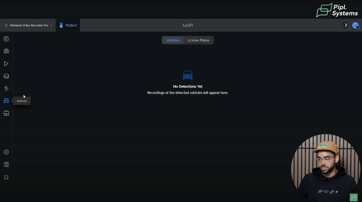 UniFi Protect cameras with built-in AI chips handle smart detections locally, without relying on cloud processing. Person and vehicle detection can be enabled per camera or defined zones through the Protect settings menu.