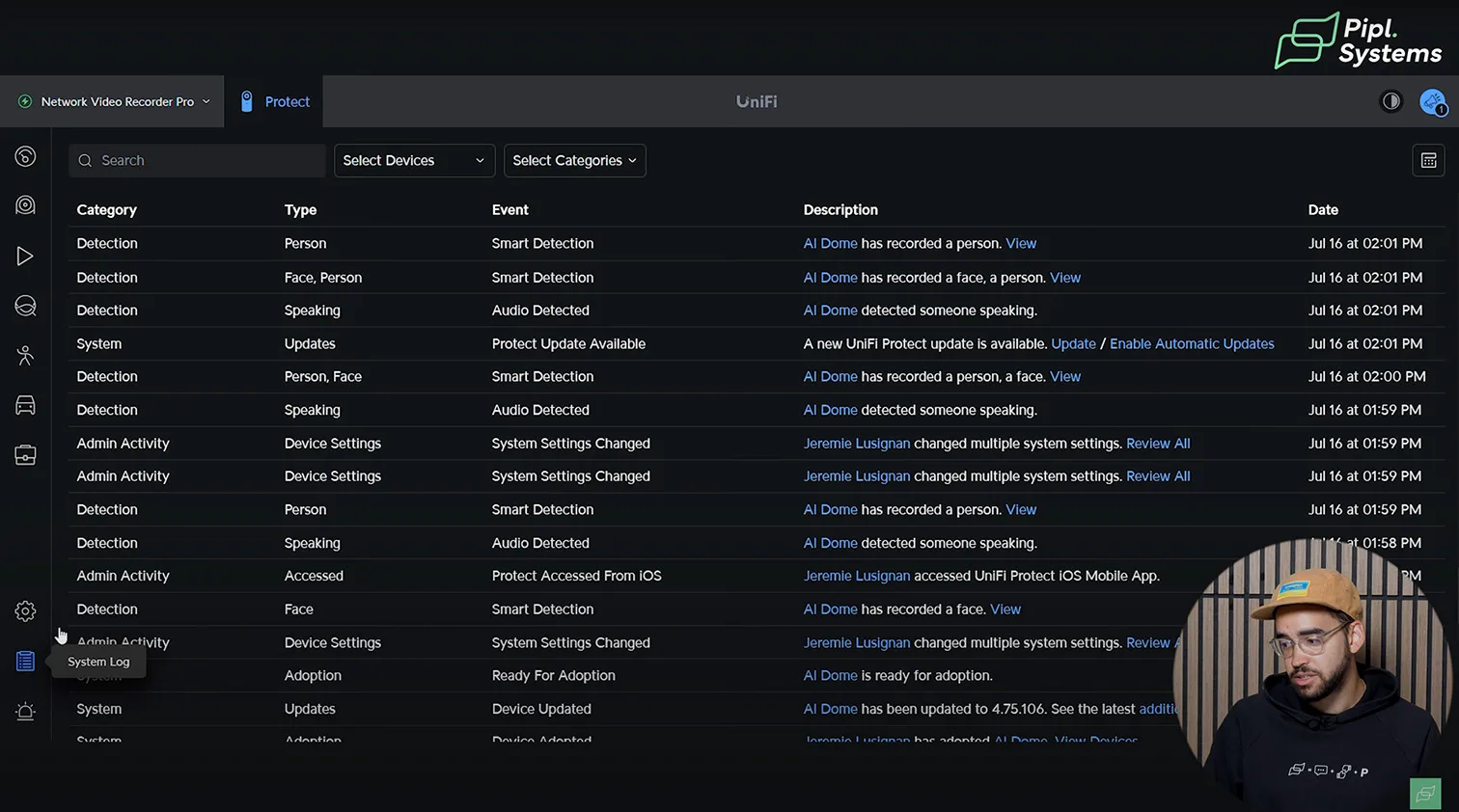 The System Log is critical for forensic review, performance audits, and admin accountability. Whether you’re investigating unauthorized access, tuning AI sensitivity, or troubleshooting device behavior, this log serves as the primary source of truth across your UniFi Protect environment.