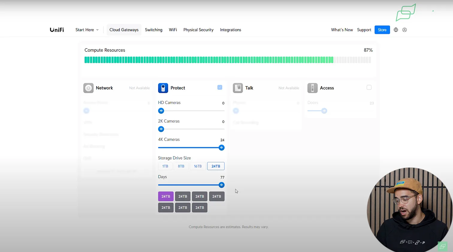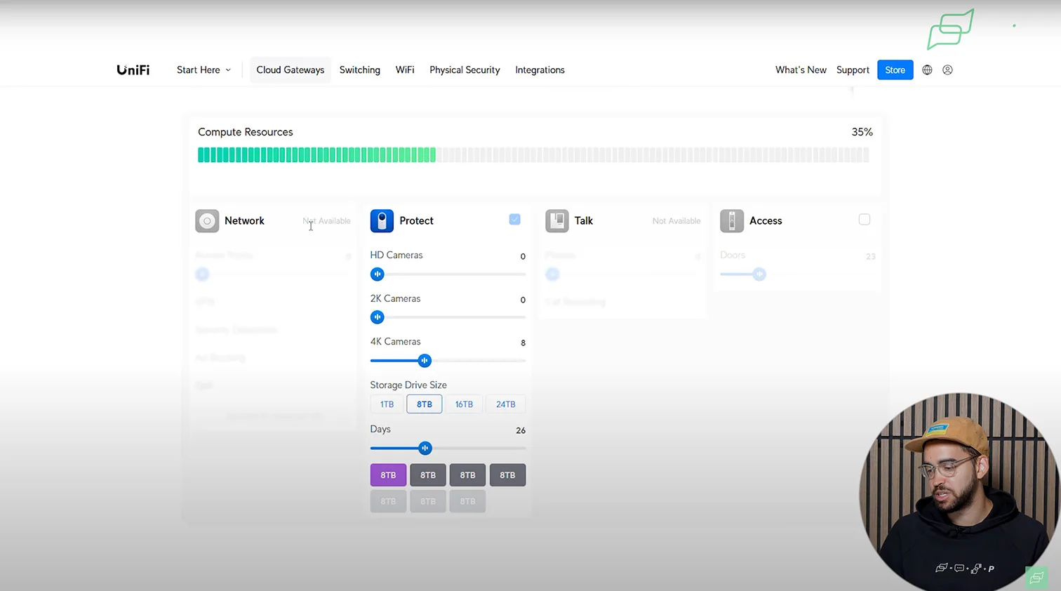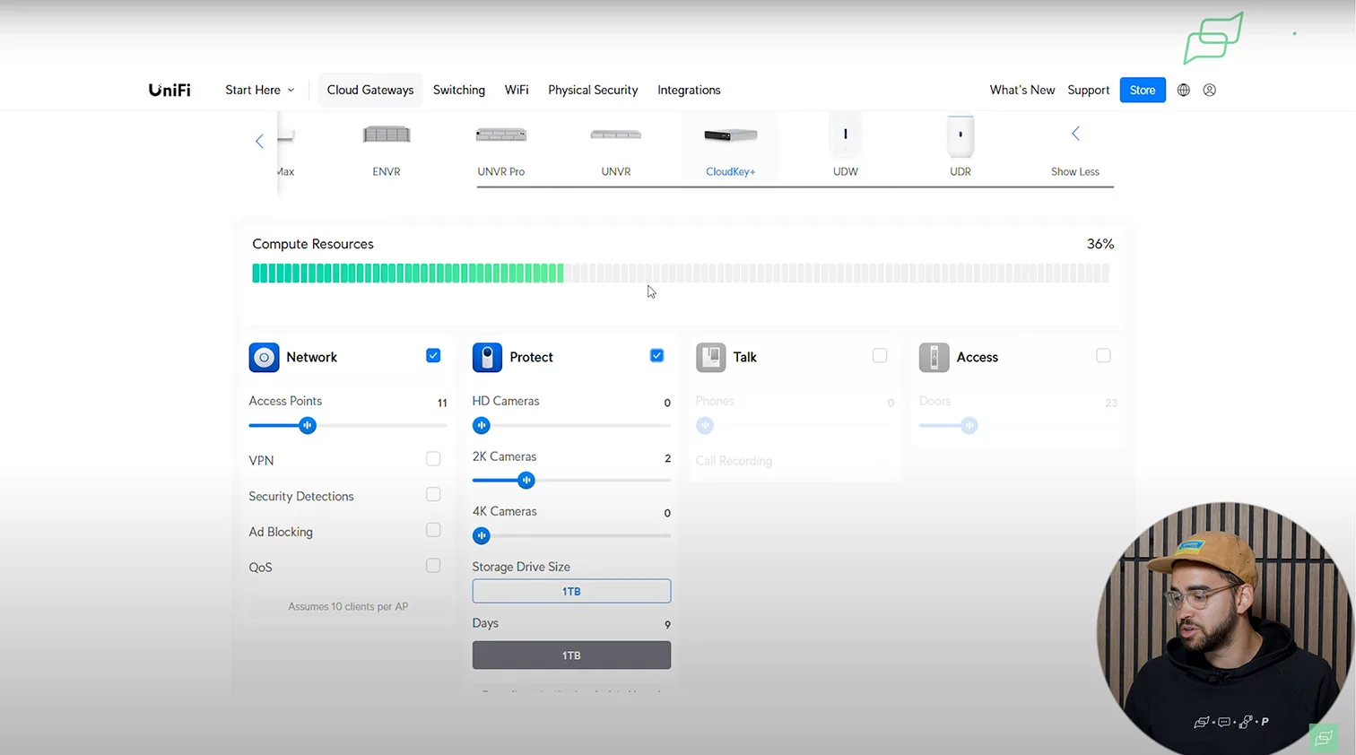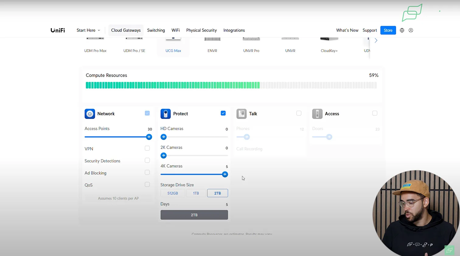 We recommend starting with Ubiquiti’s official capacity calculator – this tool shows only compatible devices and gives insight into system limits, such as camera counts, AI load, and video retention. It’s not just about what works now, but what will work as your needs grow.