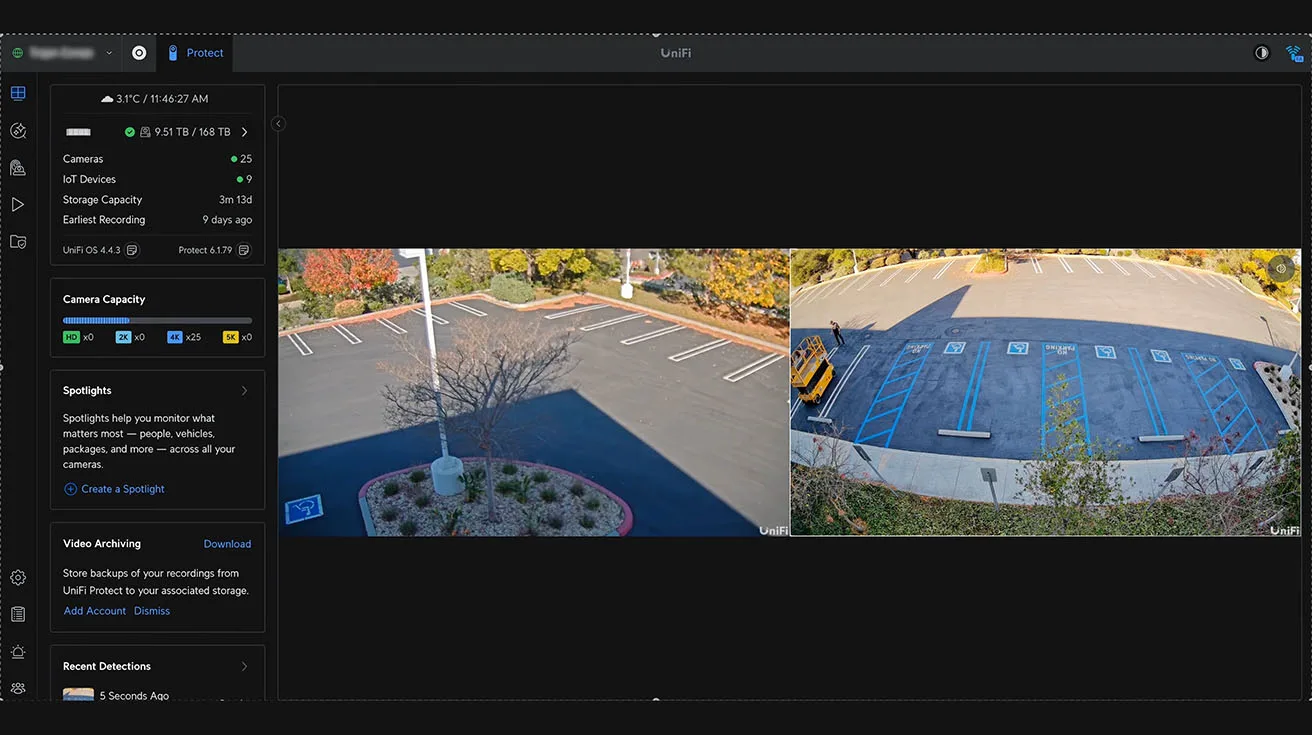 We are implementing this project in phases, and Phase 1, focusing on outdoor cameras, is already installed. Now, let’s demonstrate some of the features and configurations.