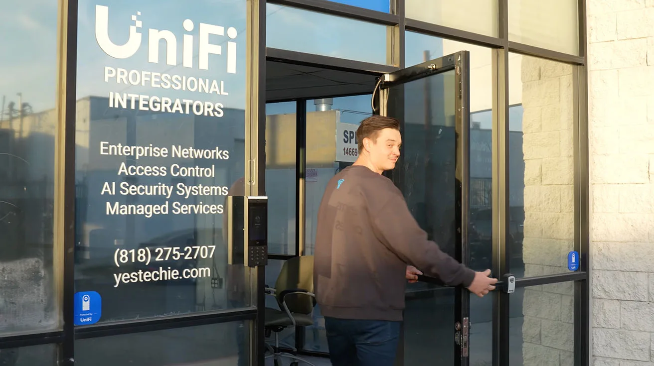 During our trip to California, we filmed our first on-site project in the U.S. together with our client YesTechie, a UniFi Certified Integrator. We went directly to their real commercial site, where the YesTechie team was installing video surveillance, access control, and network infrastructure based on the Ubiquiti Inc. UniFi platform.